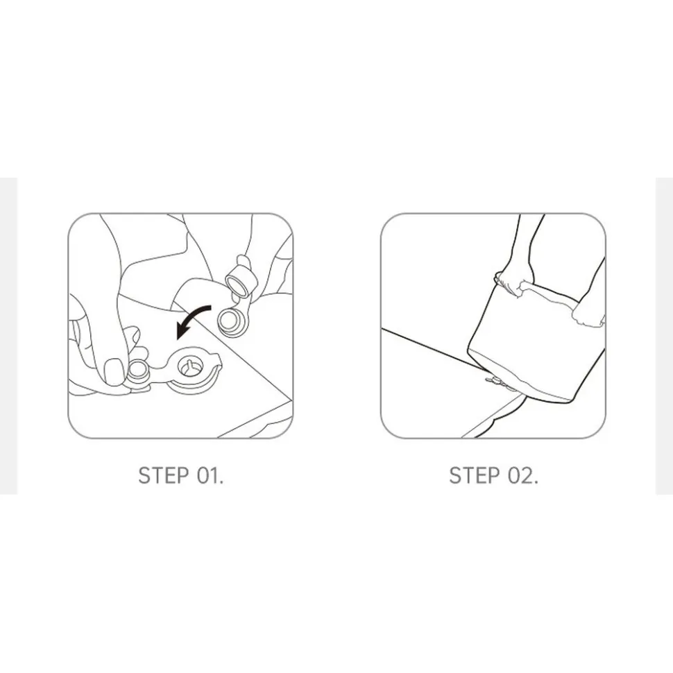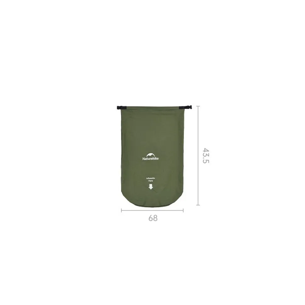 Ключевая особенность — надувание при помощи мешка, который входит в комплект. Достаточно подсоединить мешок к открытому клапану, наполнить его воздухом и свернуть — воздух быстро наполнит матрас. Герметичный клапан после этого надежно удерживает воздух внутри.