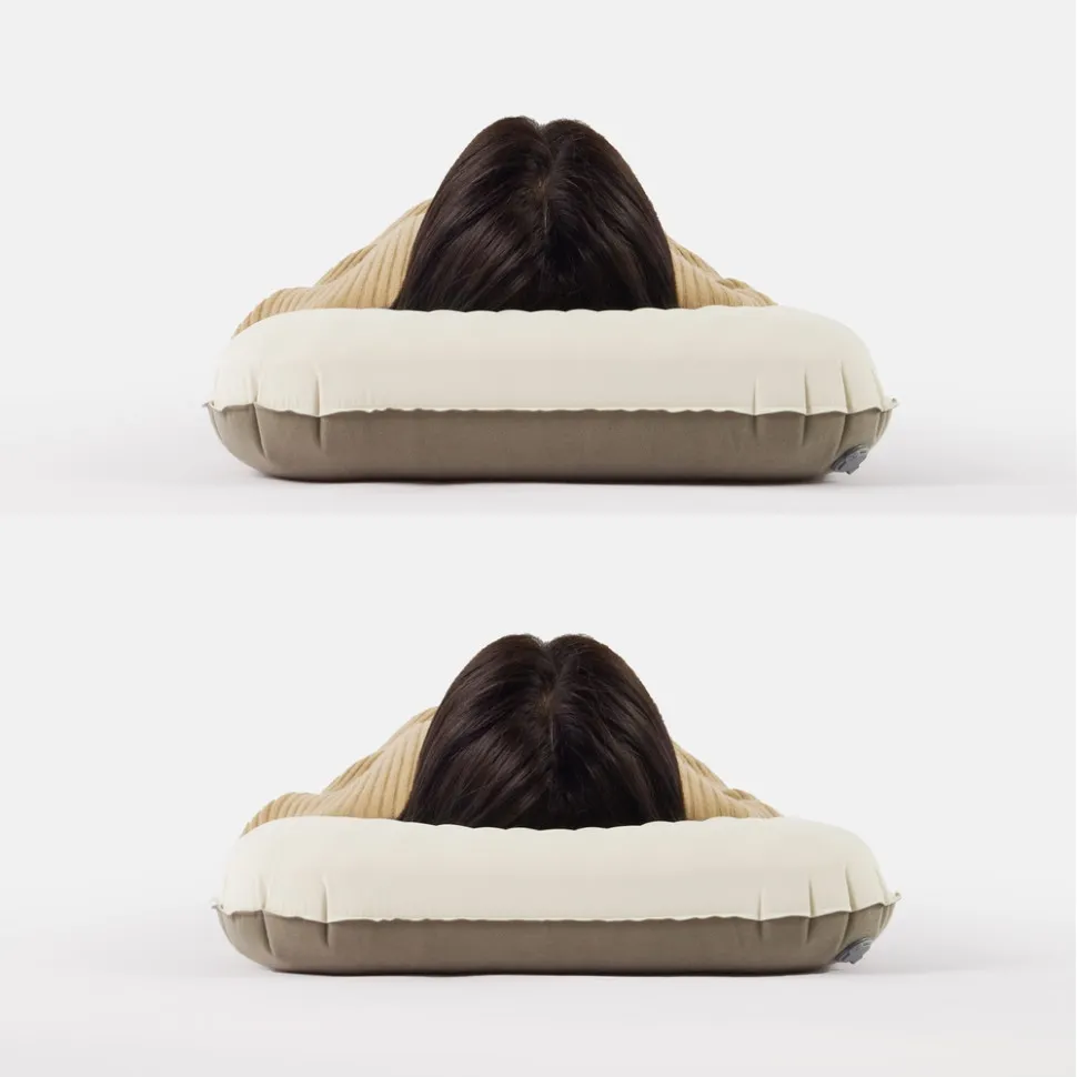 Благодаря боковому клапану, подушка быстро надувается, а её высоту можно регулировать до 12 см в зависимости от предпочтений. В надутом виде размеры составляют 52 х 32 см, а в сложенном — всего 8 х 14 см. Вес — 160 г. В комплект входит фирменный чехол, что делает хранение и транспортировку максимально удобными.