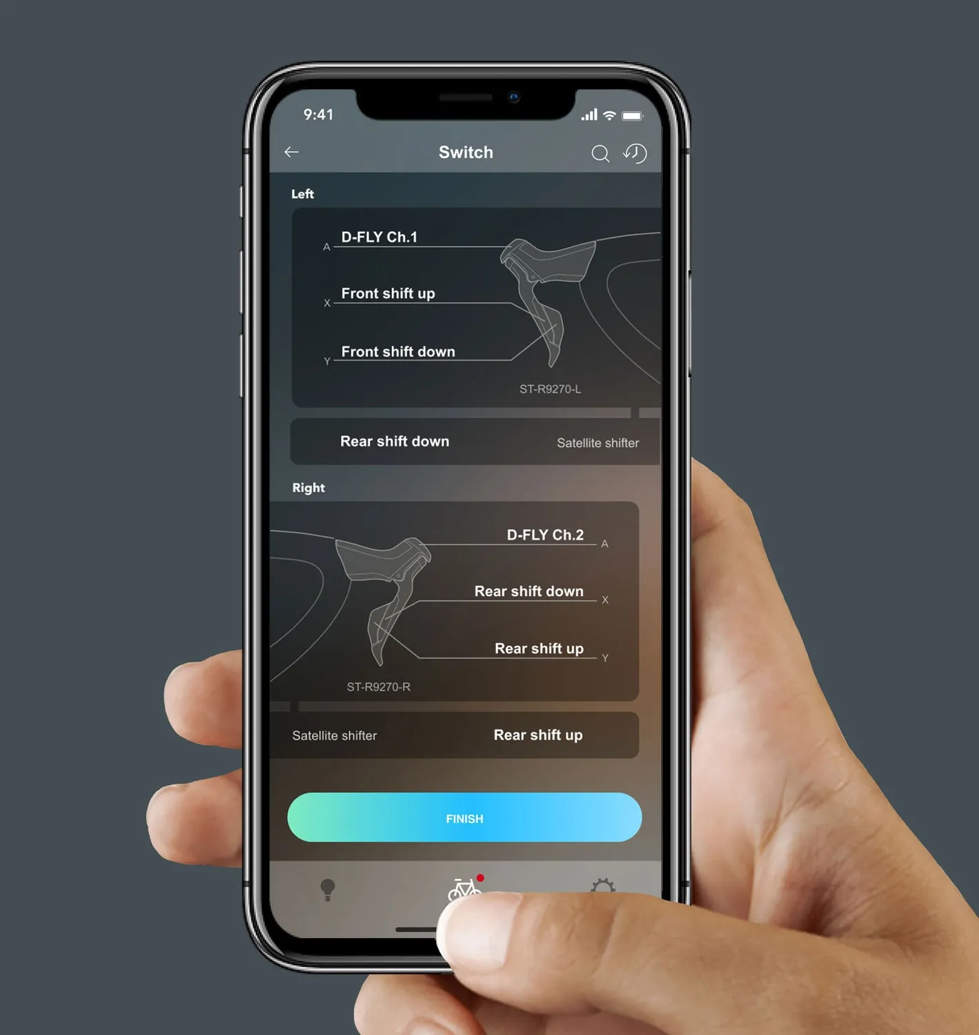 - Совместимость с приложением E-Tube – настройка скорости переключения, режима (синхрон/полусинхрон), функций кнопок прямо с телефона.